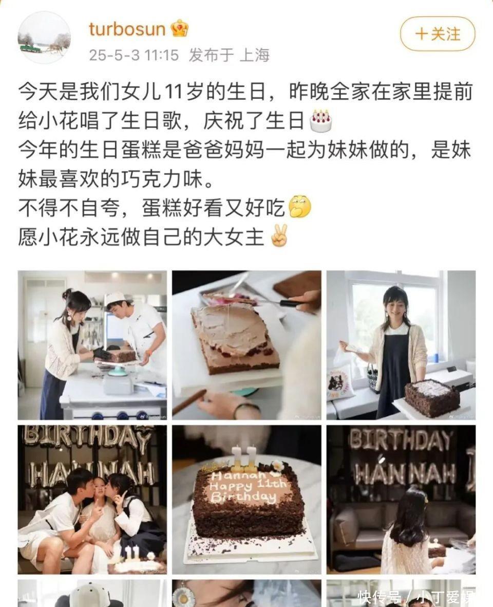 在2025年5月3日,孙俪在网络上晒出一篇动态,庆祝女儿小花迎来了11岁生日。