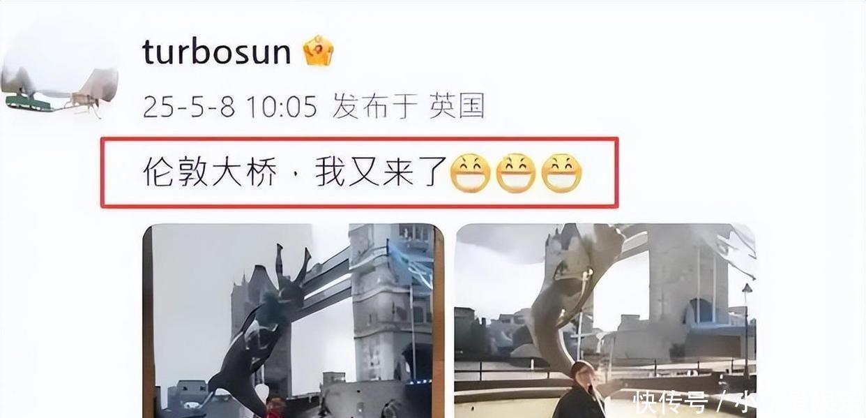 她上传了两张在伦敦桥下拍的照片,还写了句:“伦敦大桥,我又来了”。